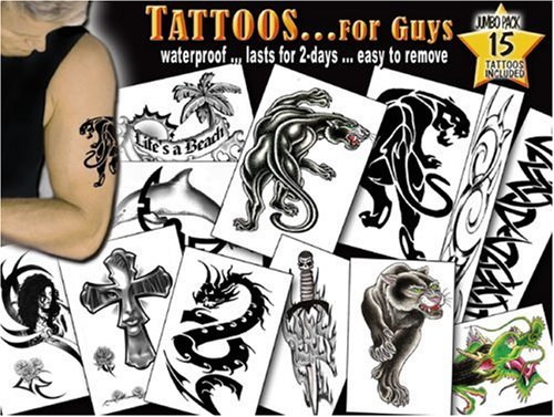 These large Masculine Tattoos look incredibly realistic on the skin?just like a real Tattoo! 100% waterproof?will not come off while bathing or swimming...lasts for 2-5 days on skin. Easy to remove with rubbing alcohol. Each package includes 24 fantastic Tattoos.